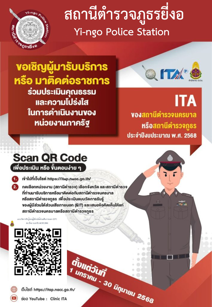 วันที่ 14/03/68 เวลา 14.30 น. พ.ต.อ.นราวี บินแวอารง ผกก.สภ.ยี่งอ พร้อมเจ้าหน้าที่ธุรการคดี สภ.ยี่งอ
