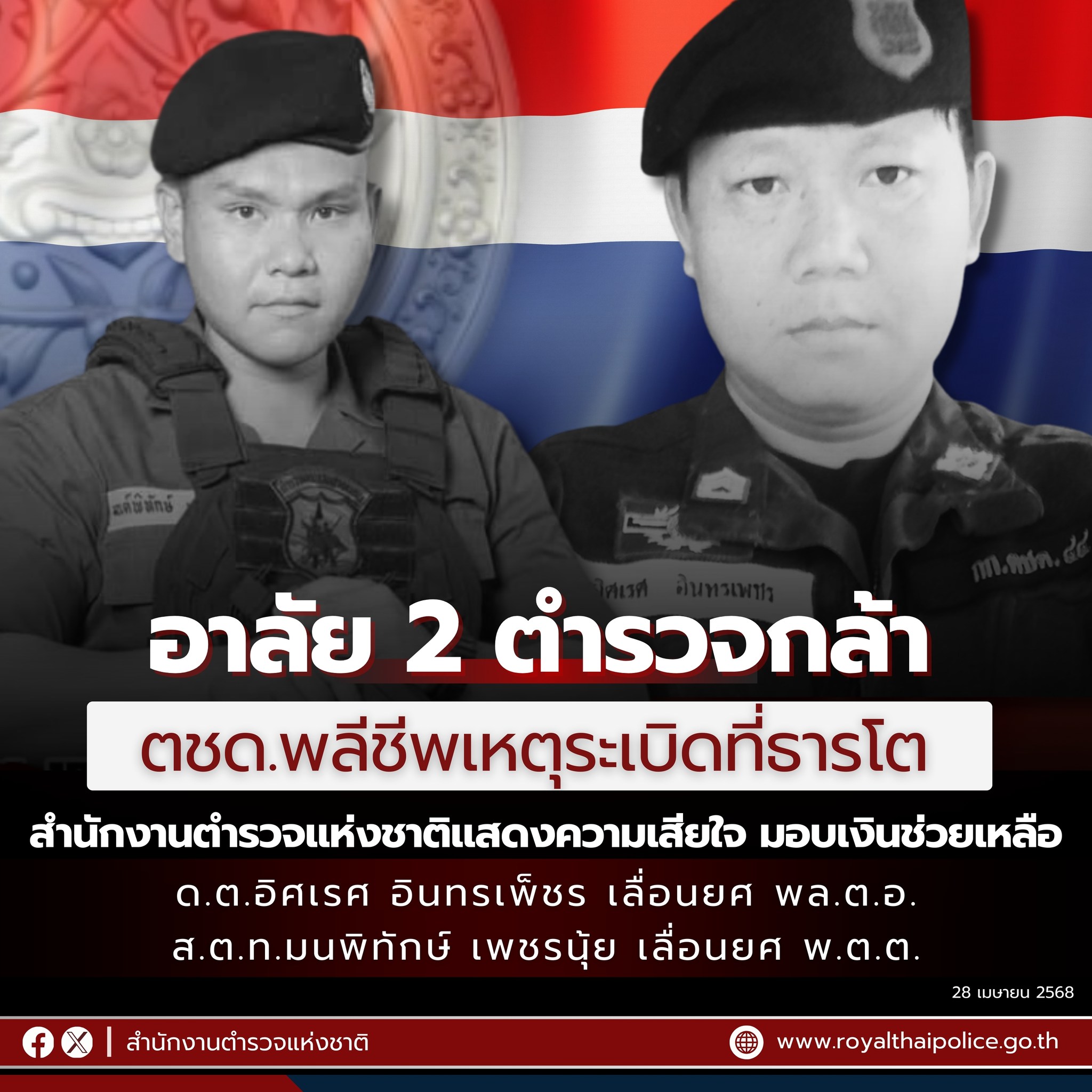 สิ้น 2 ตชด.ชายแดนใต้ สำนักงานตำรวจแห่งชาติแสดงความอาลัย มอบเงินช่วยเหลือ – ปูนบำเหน็จเลื่อนขั้น เลื่