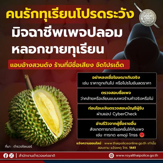 คนรักทุเรียนโปรดระวัง มิจฯ กำลังระบาด สร้างเพจปลอมหลอกขายทุเรียน แอบอ้างสวนดัง ร้านที่มีชื่อเสียง จั