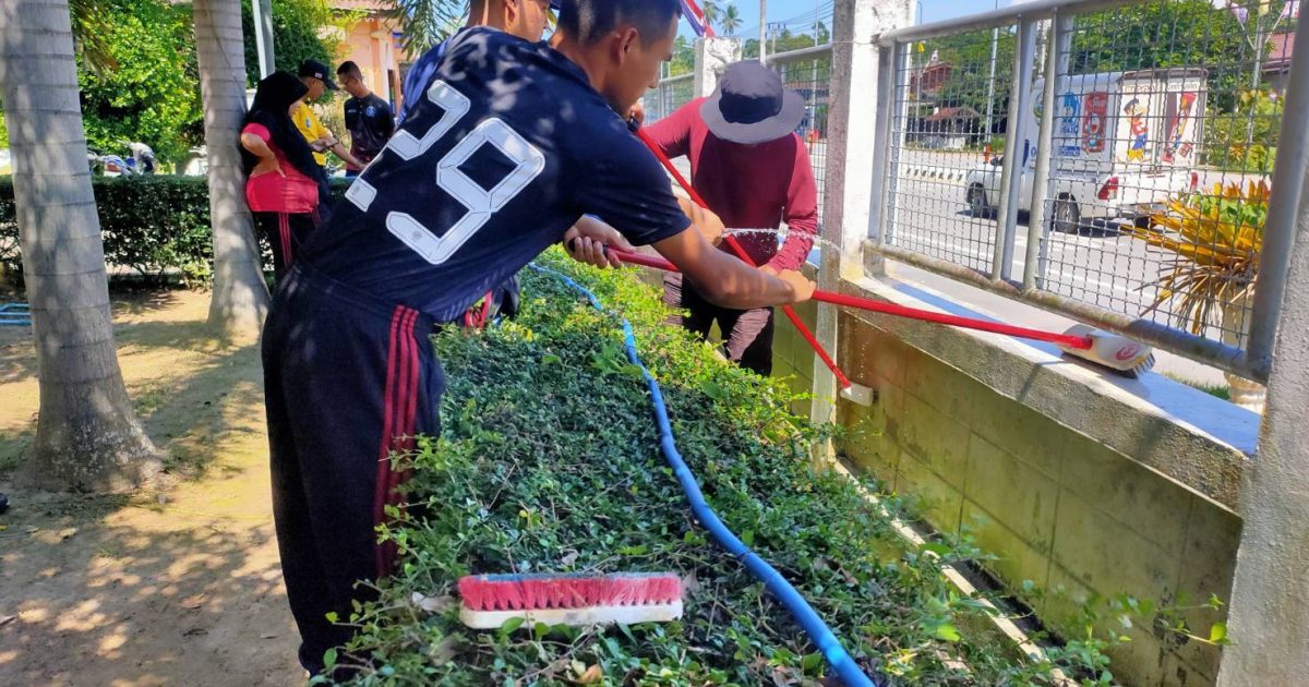 สั่งการให้ข้าราชการตำรวจฝ่ายอำนวยการ สภ.ยี่งอ ร่วมกิจกรรมพัฒนาประจำสัปดาห์ ภายใต้กิจกรรม “สถานที่ทำงานน่าอยู่ น่าทำงาน” โดยได้ดำเนินการตามกิจกรรม ขัดถูตะไคร้ น้ำกำแพงหน้า สภ.