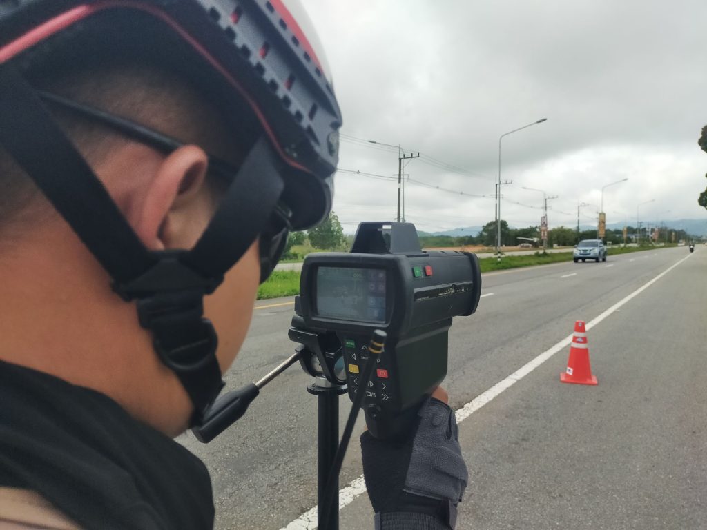 พร้อมสายตรวจจราจร ว.4 ตั้งจุดตรวจจับความเร็ว ถนนสาย42 เพื่อป้องกันและลดการเกิดอุบัติเหตุในห้วง7วันอันตราย (สงกรานต์68) ตั้งแต่วันที่11-17 เมษายน 68