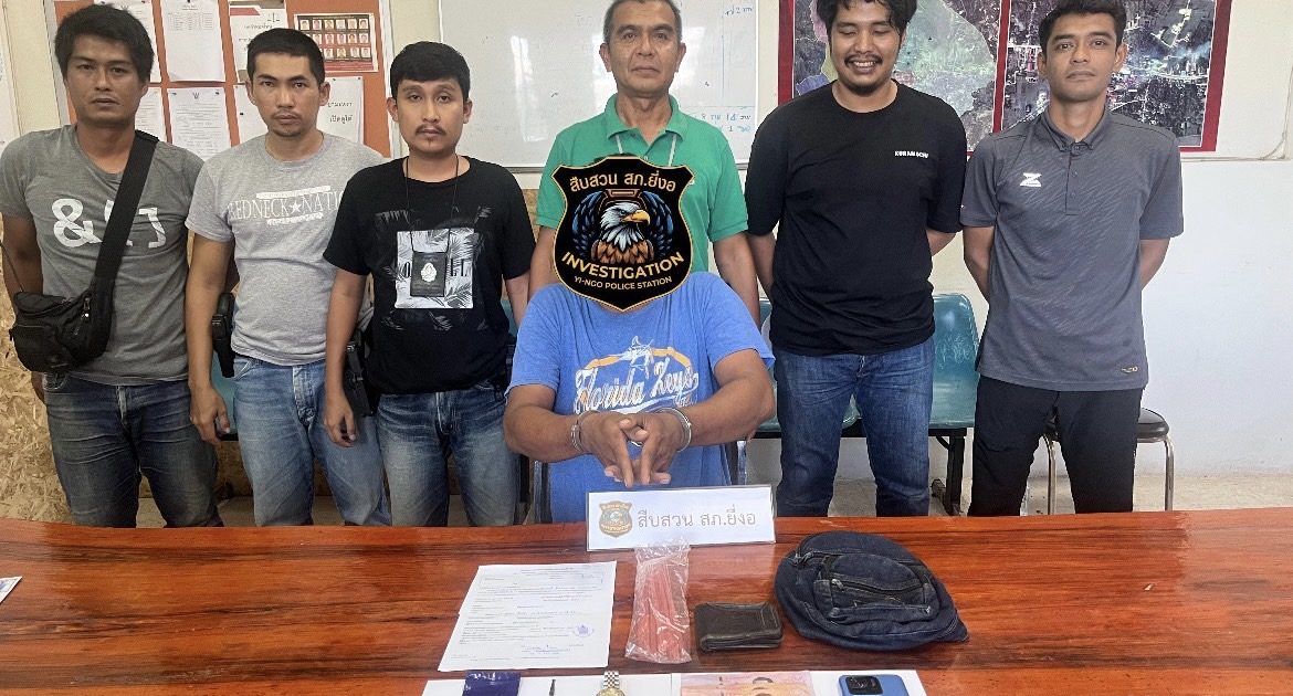 ร.ต.ท.มณฑล มามะ รอง สว.ป.สภ.ยี่งอ พร้อมด้วยชุดสืบสวน สภ.ยี่งอ ได้ร่วมกันจับกุมตัว นายมหาหมัดอันวาร์ ฮีลา อายุ 45 ปี พร้อมด้วยของกลางและเอกสาร ดังนี้