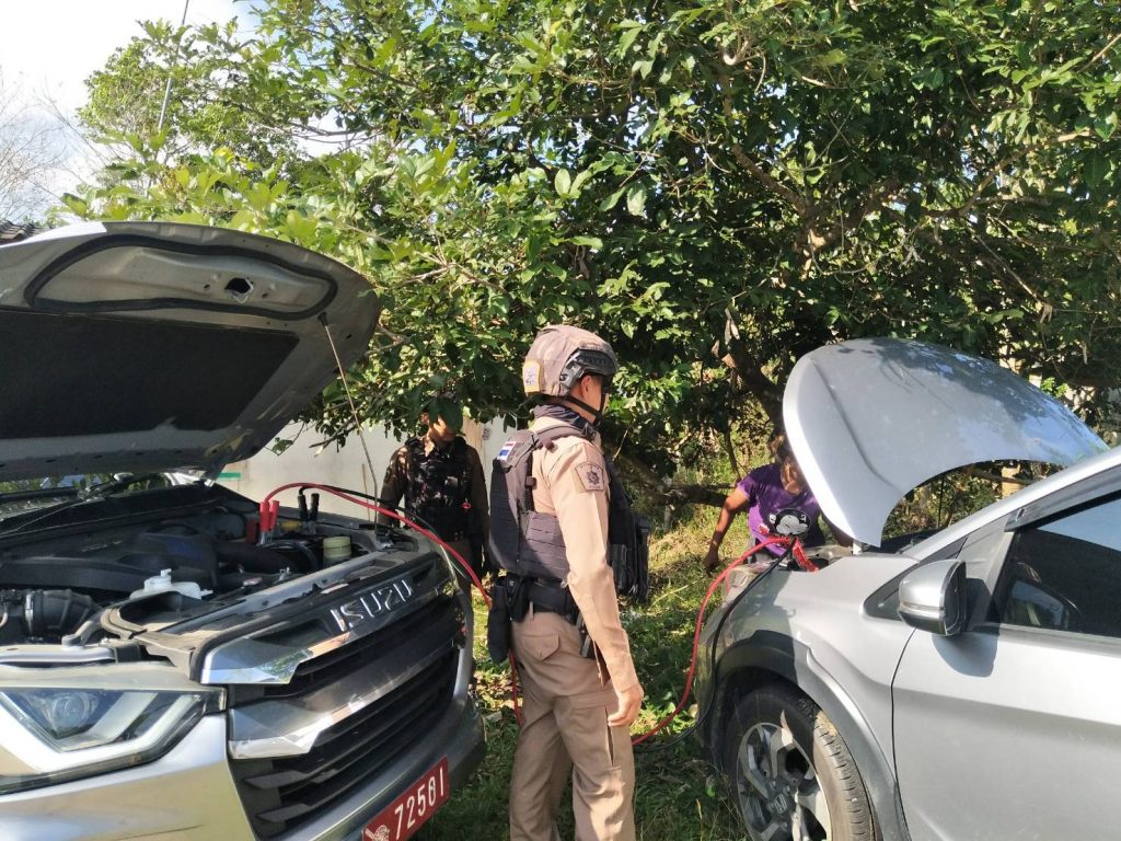 พร้อม ชป.จู่โจม 3 ให้ความช่วยเหลือประชาชนรถยนต์แบตเตอรี่หมด บริเวณหน้ารร.ร่มเกล้า ต.ยี่งอ อ.ยี่งอ จ.นราธิวาส