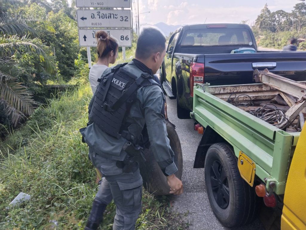 ภายใต้การอำนวยการของ พ.ต.อ.วรงค์ เกิดสวัสดิ์ ผกก.สภ.ยี่งอ พ.ต.ท.สุเทพ จันทรมาส รอง ผกก.ป.สภ.ยี่งอ พ.ต.ท.ชัยเลิศ ไฝนุ้ย สวป.สภ.ยี่งอ สั่งการให้ ร.ต.อ.มูฮำหมัดชารีฟ มีมาเต็ง รอง สวป.สภ.ยี่งอ ปฏิบัติหน้าที่ร้อยเวร20 พร้อมด้วยชุดปฏิบัติการจู่โจม 3 ให้การช่วยเหลือประชาชน ประสบเหตุ รถยนต์ยางระเบิด บนถนนสาย 42 ณ บ้านลูโบะตะแซ ม.3 ต.ยี่งอ อ.ยี่งอ จ.นราธิวาส โดยได้ทำการเปลี่ยนยางอะไหล่ทดแทน สามารถใช้งานได้ปกติ