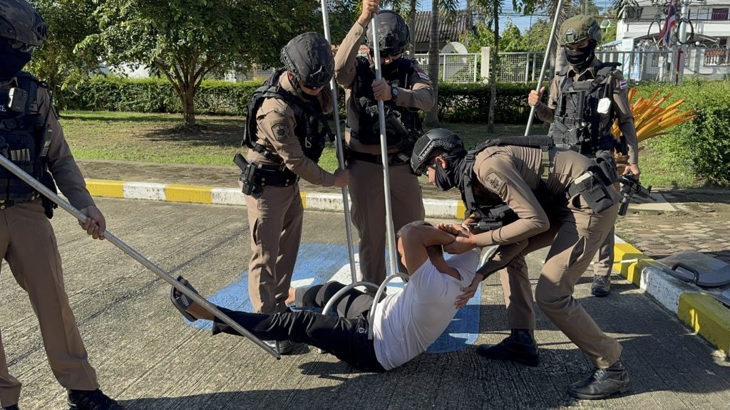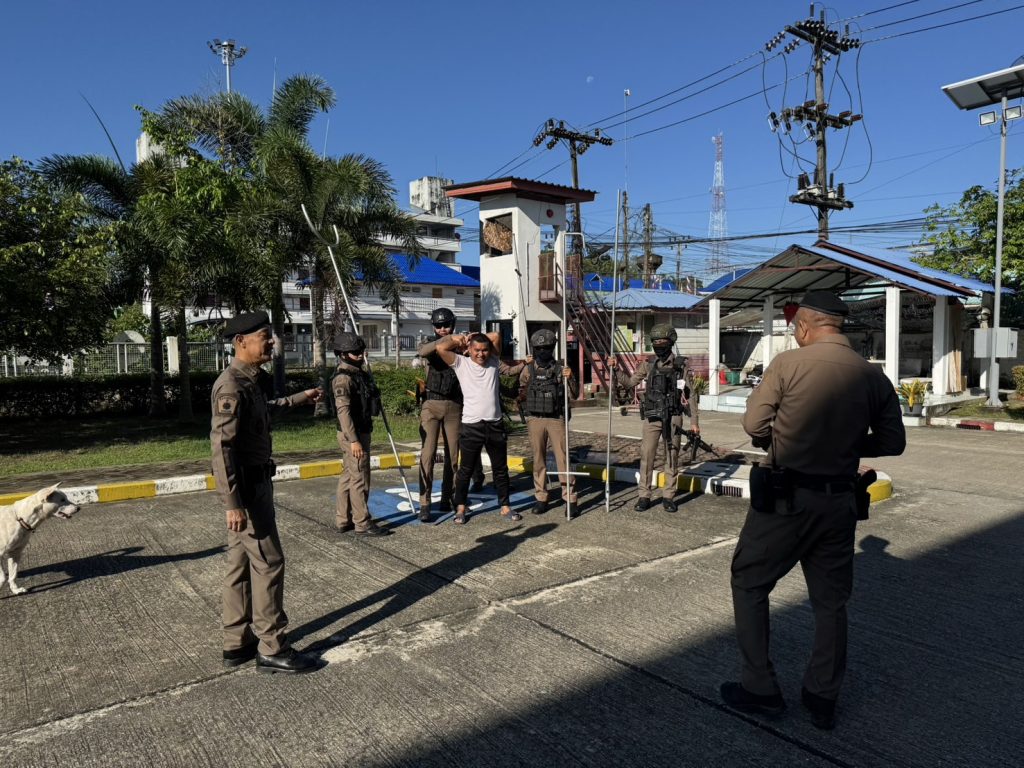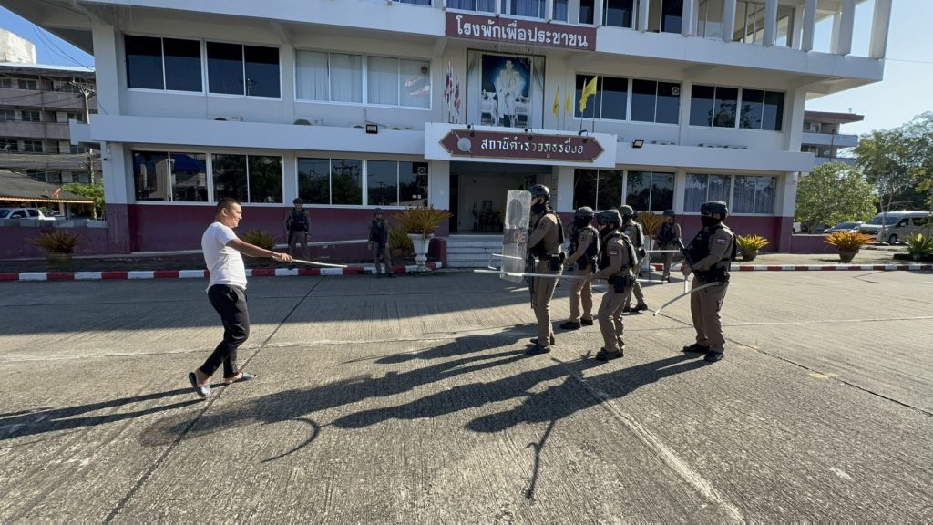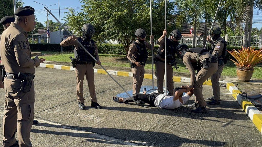 ซักซ้อมแผนเผชิญเหตุกรณีใช้ไม้ง่ามระงับเหตุบุคคลอาละวาดตามหลักยุทธวิธี