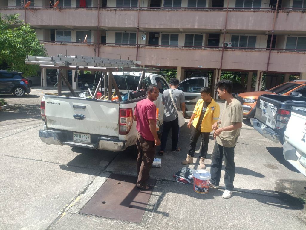 จนท.ชุดรื้อถอน(เดิม) ของ สป.มท. ดำเนินการซ่อมแซมบำรุง ทาสีและใส่ฝาเพดาน ในห้องควบคุม CCTV เรียบร้อย