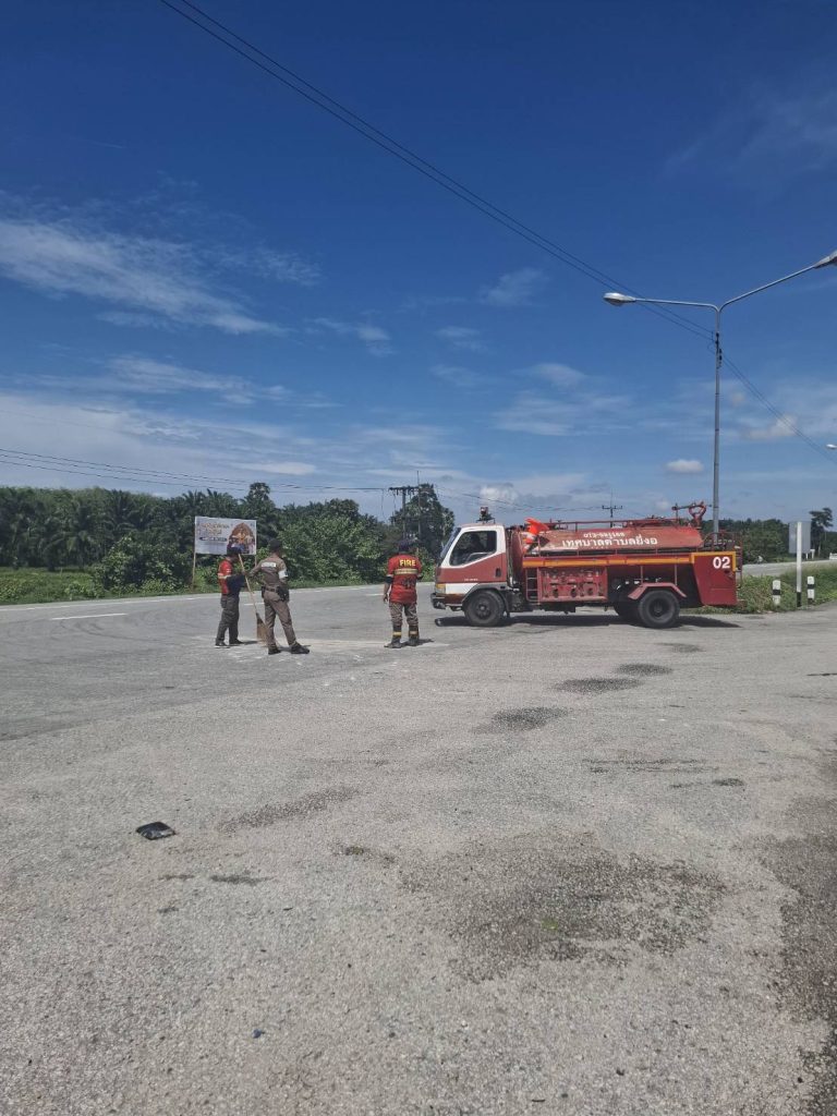 ข่ายจราจร ร่วม จนท. เทศบาลยี่งอ ว.4 ทำความสะอาดดิน หินตกหล่นถนนสาย 42 บริเวณที่กลับรถหลังตลาด