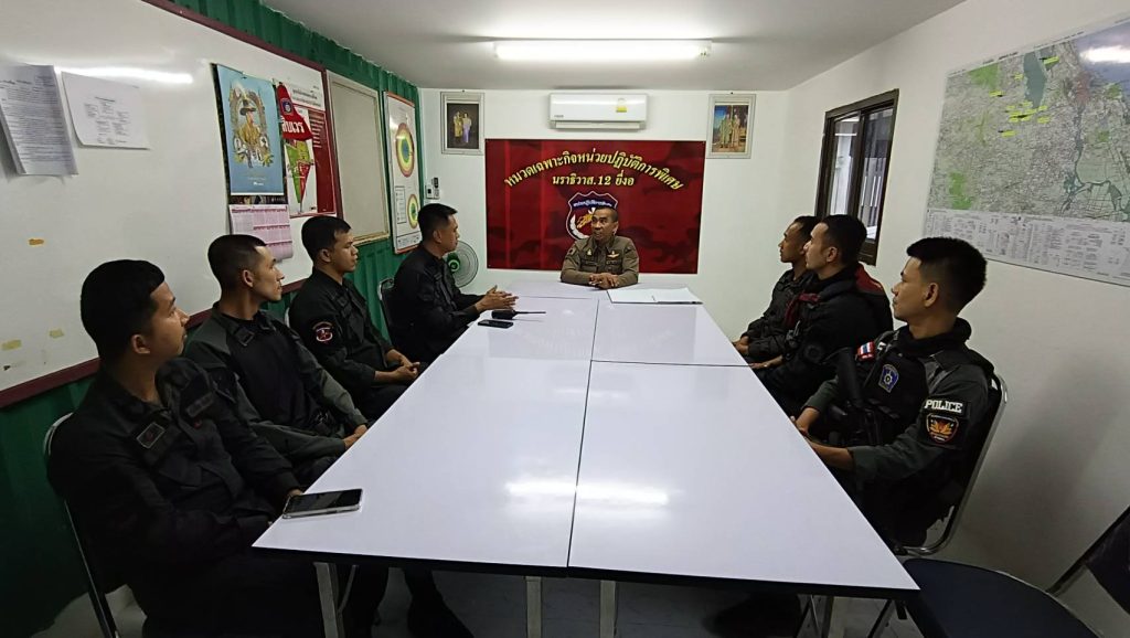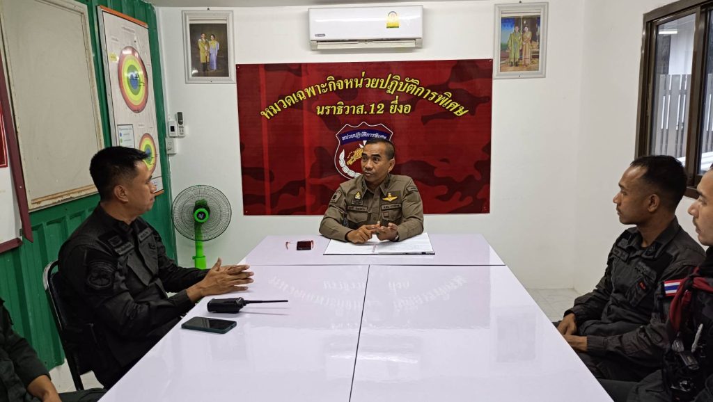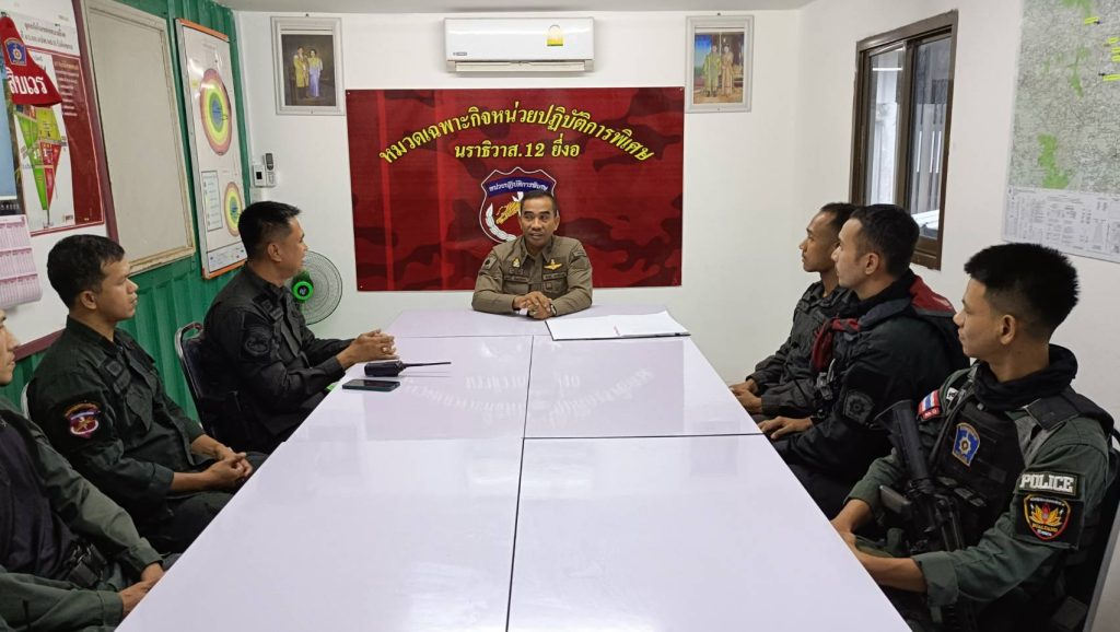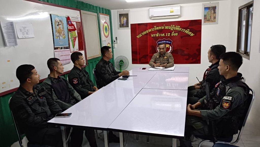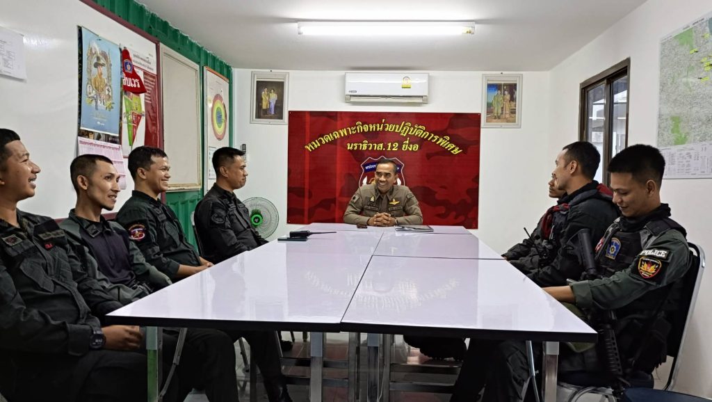 ➖ เดินทางตรวจเยี่ยม มว.ฉก.นปพ.นธ.๑๒ พบ ร.ต.ท.นารือวี หะยีมะดือเระ ผบ.มว.ฉก.นปพ.นธ.๑๒ พร้อมกำลังพลปฏิบัติหน้าที่ รายงานเหตุการณ์ปกติ ได้มีข้อสั่งการดังนี้