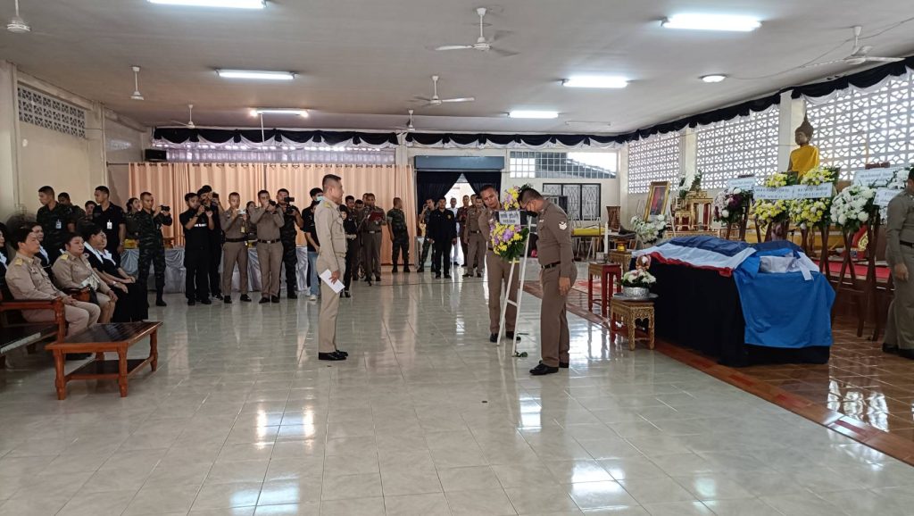 พร้อมข้าราชการตำรวจ สภ.ยี่งอ ร่วมพิธีรดน้ำศพ และพิธีพระราชทานน้ำหลวงอาบศพและพิธีวางพวงมาลาพระราชทาน ส.ต.ท.ภคพงศ์ สุวรรณชะนะ เสียชีวิตจากเหตุ 511 เมื่อวันที่ 4 พ.ค. 68