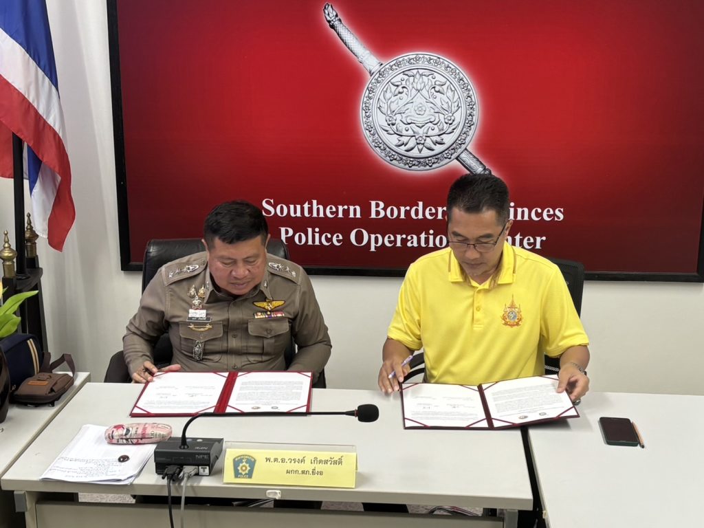 เมื่อวันที่ 28 ต.ค.2567 เวลา 10.30 น. พ.ต.อ.วรงค์ เกิดสวัสดิ์ ผกก.สภ.ยี่งอ พ.ต.ท.สุเทพ จันทรมาส รอง.ผกก.ป.สภ.ยี่งอ พร้อมด้วย นายอับดุลเลาะ เจ๊ะเลาะ นายกเทศมนตรีตำบลยี่งอ นายอรรณพ อดิศัยเผ่าพันธุ์ รองนายกเทศมนตรีตำบลยี่งอ ร่วมลงนามบันทึกข้อตกลง (MOU) ว่าด้วยความร่วมมือในการรักษาความสงบเรียบร้อยและการรักษาความปลอดภัยของประชาชนในท้องถิ่นและชุมชน ระหว่าง สถานีตำรวจภูธรยี่งอ และ เทศบาลตำบลยี่งอ ณ ห้องประชุมชั้น 3 สถานีตำรวจภูธรยี่งอ