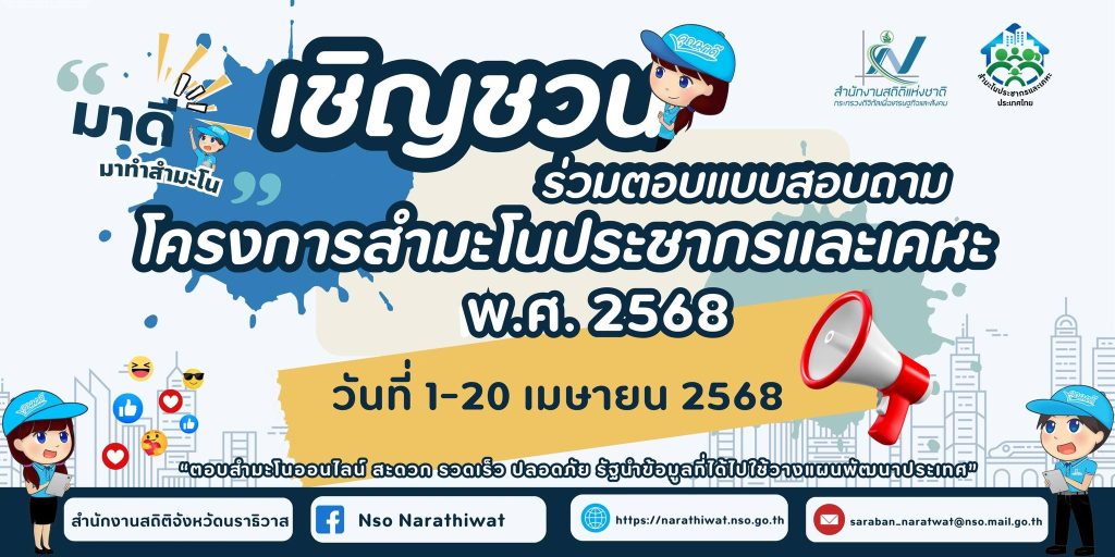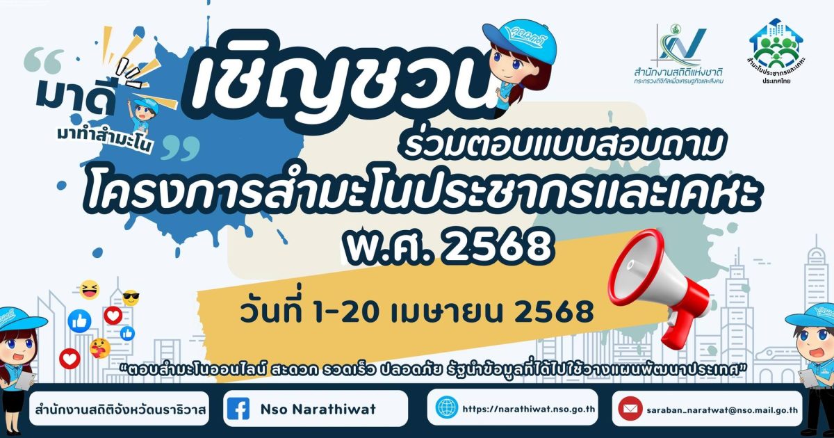 เชิญชวน พี่น้องประชาชน ร่วมตอบแบบสอบถามโครงการสำมะโนประชากรและเคหะ พ.ศ.2568