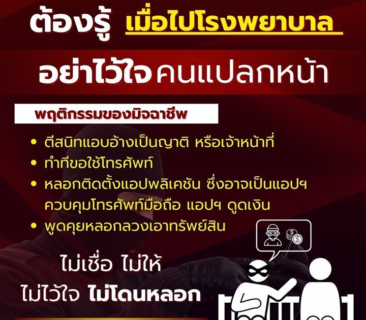 เมื่อท่านไปในที่สาธารณะ เช่น โรงพยาบาล หน่วยงานราชการต่าง ๆ ที่มีผู้คนไปใช้บริการจำนวนมาก แม้เป็นสถานที่ปลอดภัย แต่ก็อาจมีมิจฉาชีพแฝงตัวมา
