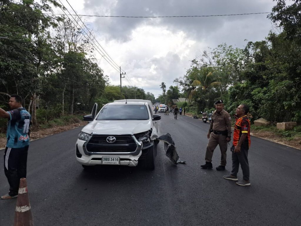 ว.4 เหตุ ว.40 รถยนต์ กับ จยย. บริเวณถนนสายคอลาแว มีผู้ใดได้รับบาดเจ็บ 1 ราย นำส่งโรงพยาบาลเรียบร้อย