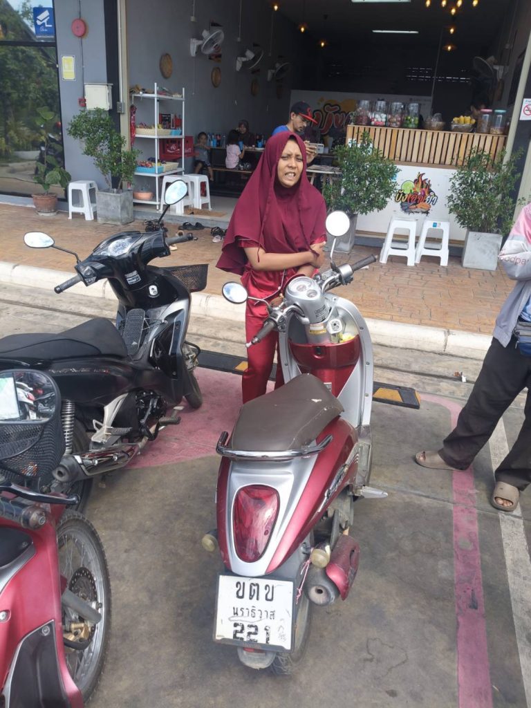 จากการสืบสวนจากสายข่าวในพื้นที่ ทราบว่าผู้ต้องสงสัย ชื่อนางสาว นาซีย์ฟะฮ์ มะสูละ (1-9604-00069-16-4) อายุ 32 ปี อยู่บ้านเลขที่ 116/5 ม.1 บ้านบูแมใน ต.ยี่งอ อ.ยี่งอ จว.นราธิวาส เจ้าหน้าที่ตำรวจชุดสืบสวน นำโดย พ.ต.ท.วิเชียร บัวนวล สว.สส.สภ.ยี่งอ พร้อมกำลัง ได้เดินทางไปยังบ้านเลขที่ดังกล่าวเพื่อทำการสืบสวนเพิ่มเติม ทราบว่า นางสาว นาซีย์ฟะฮ์ มะสูละ มีพฤติการณ์เป็นผู้ป่วยจิตเวช ปัจจุบันอยู่ในช่วงการรักษาตัว และยังสืบทราบอีกว่า นางสาว นาซีย์ฟะฮ์ มะสูละ มักจะเดินทางไปยังจังหวัดปัตตานี โดยนางสาว นาซีย์ฟะฮ์ มะสูละ เคยแต่งงานกับแบเซ็ง ซึ่งเป็นคนพื้นที่ บ้านตะลูโบะ อ.เมืองปัตตานีฯ เจ้าหน้าที่ตำรวจชุดสืบสวนจึงได้ร่วมกันตรวจสอบกล้องวงจรปิดติดตามเส้นทางที่นางสาว นาซีย์ฟะฮ์ มะสูละ เดินทางไป จนเชื่อได้ว่านางสาว นาซีย์ฟะฮ์ มะสูละ เดินทางไปจังหวัดปัตตานีจริง เจ้าหน้าที่ตำรวจชุดสืบสวนสามารถตรวจพบรถจักรยานยนต์ที่แจ้งไว้และนางสาว นาซีย์ฟะฮ์ มะสูละ ได้ บริเวณ ร้านกาแฟอเมซอนในปั๊มน้ำมัน ปตท. สาขาหลัง มอ.ปัตตานี เจ้าหน้าที่ตำรวจชุดสืบสวน จงได้นำรถจักรยานยนต์และนางสาว นาซีย์ฟะฮ์ มะสูละ เดินทางกลับมายัง สภ.ยี่งอ เพื่อทำการบันทึกตรวจยึดและส่งมอบให้กับผู้เสียหายต่อไป โดยเจ้าหน้าที่ตำรวจชุดสืบสวน สภ.ยี่งอ ขอขอบคุณเจ้าหน้าที่ตำรวจทุกภาดส่วนที่ช่วยสามารถติดตามรถจักรยานยนต์กลับคืนมาได้ ทั้งนี้ ขอทำการแจ้งยกเลิกการติดตามรถจักรยานยนต์สูญหายได้ ตั้งแต่บัดนี้