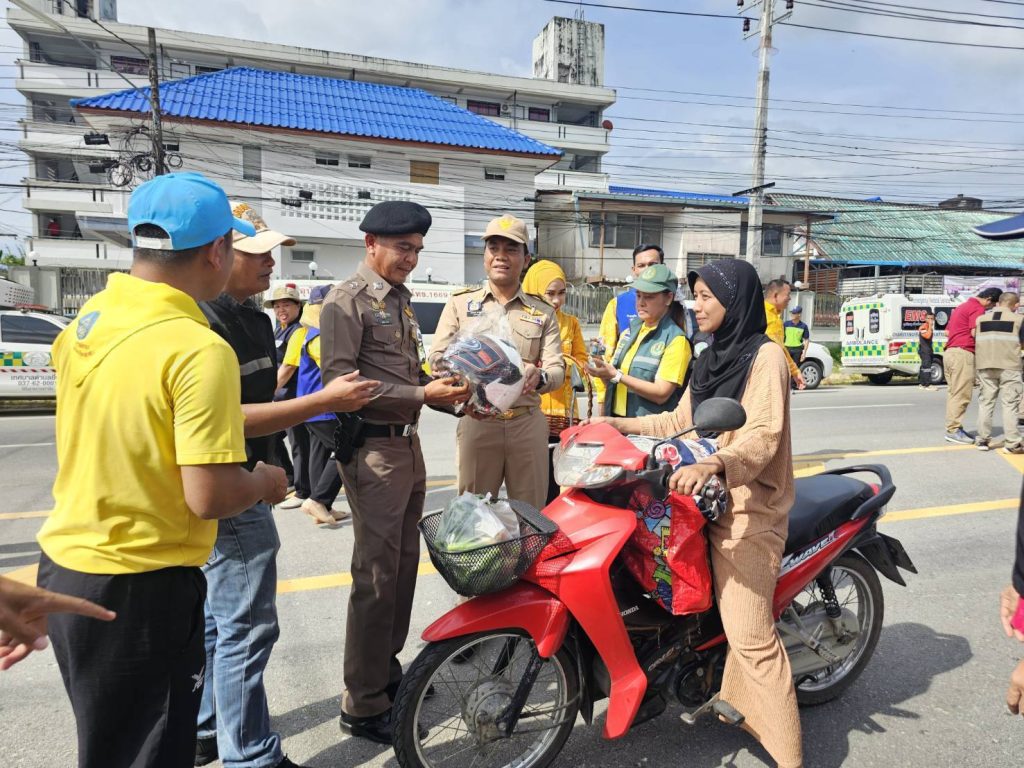 พ.ต.อ.นราวี บินแวอารง ผกก.สภ.ยี่งอ พ.ต.ท.วิเชียร บัวนวล สว.สส.สภ.ยี่งอ ว่าที่พ.ต.ต.อัมราน ดอเลาะ สวป.สภ.ยี่งอ พร้อมเจ้าที่หน้าที่ 3 ฝ่าย, เจ้าหน้าที่สาธารณสุข, เจ้าหน้าองค์กรปกครองส่วนท้้องถิ่น ,ข้าราชการตำรวจจิตอาสาสภ.ยี่งอ และประชาชนจิตอาสาร่วมพิธีเปิดจุดตรวจโครงการขับขี่ปลอดภัย เมืองไทยไร้อุบัติเหตุ เทศกาลสงกรานต์ ปี 2568 ระหว่างวันที่ 11-17 เม.ย.68 และได้มีการมอบหมวกนิรภัยแก่ประชาชนที่ใช้รถใช้ถนน ตามโครงการจิตอาสาจราจร รณรงค์ขับขี่ปลอดภัยเพื่อลดอุบัติเหตุทางบก โดยมี นายกิตติพงษ์ อำพันธ์ นายอำเภอยี่งอ เป็นประธานในพิธีฯ ณ จุดตรวจหน้าสถานีตำรวจภูธรยี่งอ อ.ยี่งอ จ.นราธิวาส