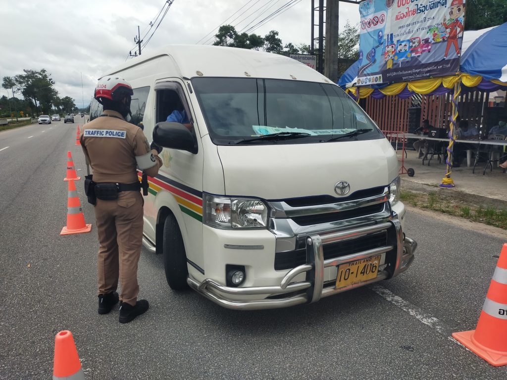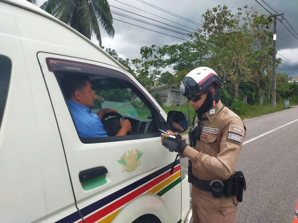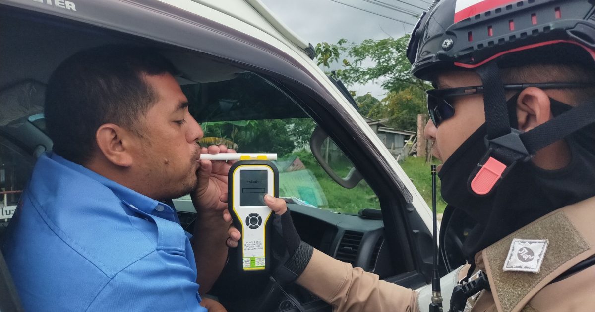 พร้อมข่ายจราจร ว.4 กวดขันวินัยจราจร ถนนสาย42 (โฮมมาร์เกต) พร้อมทั้งมีการใช้เครื่องเป่าแอลกอฮอล์จากลมหายใจ เพื่อเป็นการป้องกันอุบัติเหตุทางถนนในช่วงเทศกาลวันหยุดสงกรานต์ 2568