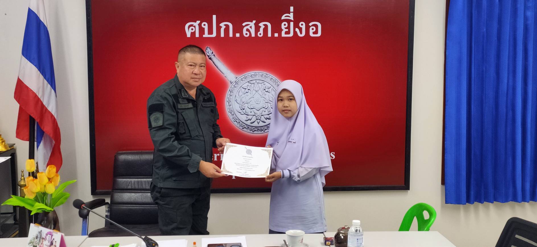 เมื่อวันที่ 17 มกราคม 2568 เวลา 10.30 น.พ.ต.อ.วรงค์ เกิดสวัสดิ์ ผกก.สภ.ยี่งอ มอบใบประกาศนียบัตรให้แก