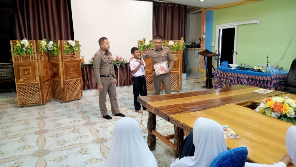 ข่าวกิจกรรม ครูตำรวจ D.A.R.E. สภ.ยี่งอ 26 พฤษภาคม 2565 โดย admin / ข่าวภารกิจผู้บังคับบัญชา,ข่าวกิจกรรม เมื่อวันที่ 29 พฤศจิกายน 2566 เวลา 09.00-12.00 น. ภายใต้การอำนวยการของ พ.ต.อ.วรงค์ เกิดสวัสดิ์ ผกก.สภ.ยี่งอ มอบหมายให้ ร.ต.ต.สาเหะสกันฎา บินหะมะ ด.ต.อับดุลการีม อารง จ.ส.ต.มูฮัมหมุดคอซาพี ติยา ครูตำรวจ D.A.R.E. สภ.ยี่งอ เข้าทำการสอน หลักสูตร แดร์ ประเทศไทย (โครงการ การศึกษาเพื่อต่อต้านการใช้ยาเสพติดในเด็กนักเรียน) โรงเรียนบ้านต้นตาล ต.จอเบาะ อ.ยี่งอ จ.นราธิวาส Facebook iconFacebookTwitter iconTwitterLINE iconLine