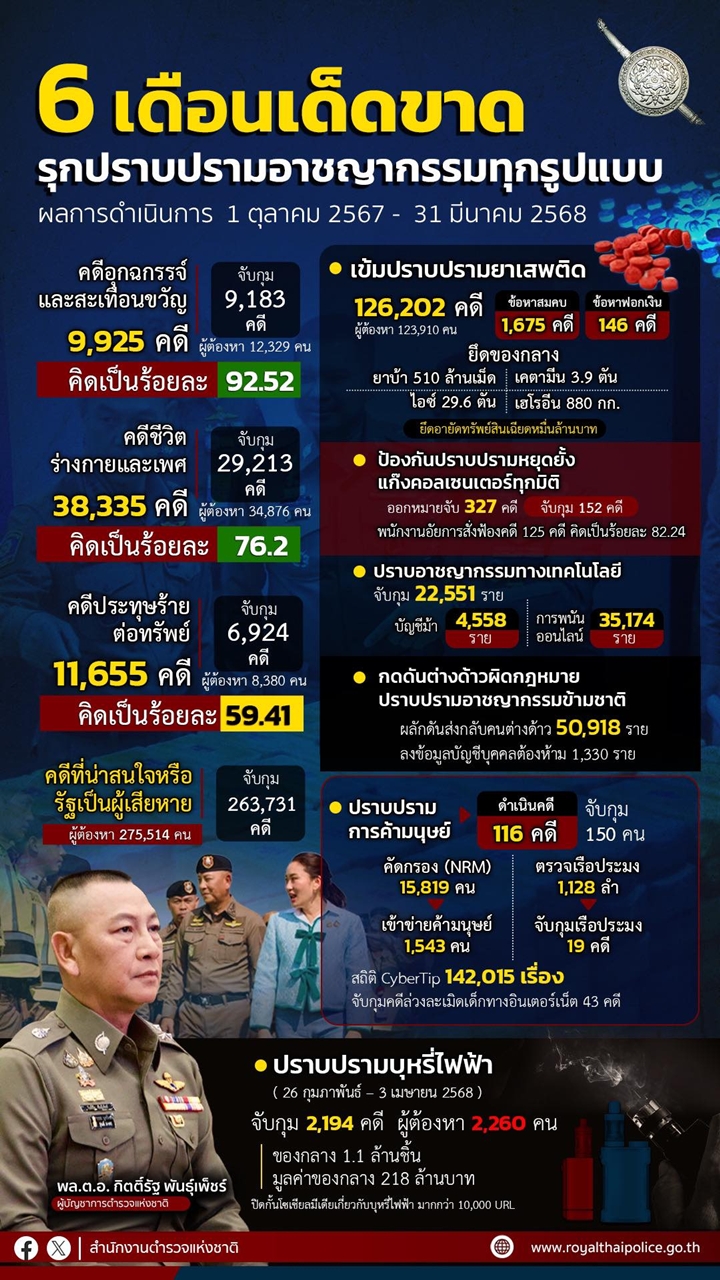 🚨6 เดือนเด็ดขาด‼️สำนักงานตำรวจแห่งชาติ รุกปราบปราม กวาดล้างอาชญากรรมทุกรูปแบบ เพื่อความผาสุกของพี่น้